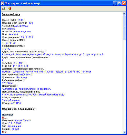 Рисунок 3.9. Печать резюме ЭМК: предварительный просмотр