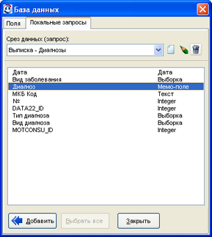 Чтобы использовать значение поля из локального запроса, нужно нажать кнопку Вставить поле из локального запроса и указать запрос и поле из него (рис. 2.10.5). Поля локального запроса вставляются с префиксом @. Кроме того, можно обратиться к определенной строке локального запроса, используя функции RecCount() и RecNo(). |