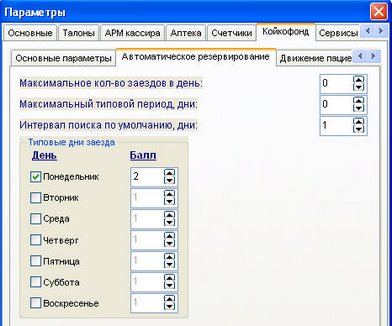 Рисунок 8.2. Параметры коечного фонда. Автоматическое резервирование