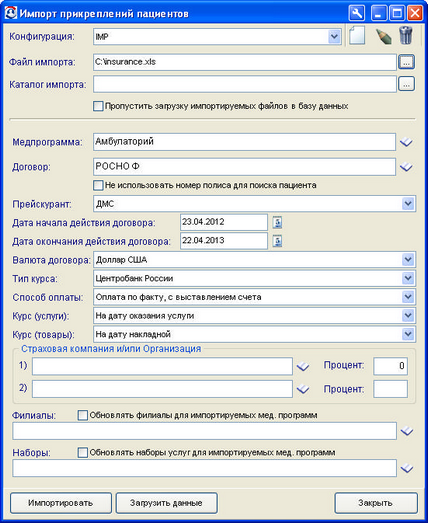Рисунок 14.4.4. Окно настройки и запуска импорта прикреплений пациентов