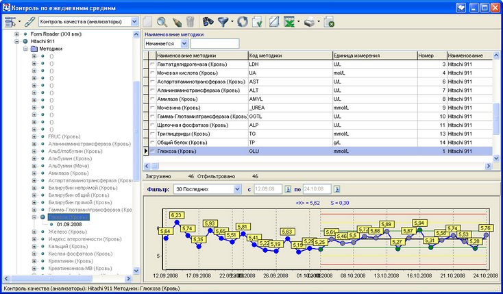 Данный метод доступен из меню Лаборатория / Контроль качества по ежедневным средним (рис. 13.31).