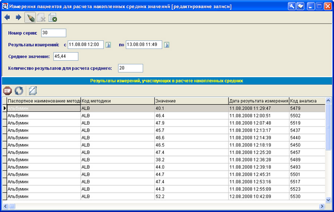 При открытии строки с усредненным значением на просмотр или редактирование можно просмотреть информацию о тех измерениях, на основе которых было вычислено усредненное значение (рис. 13.29).