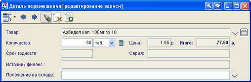 ·Редактировать эти параметры. Редактировать их также можно непосредственно в строке документа. Параметры НДС реализации, Валюта реализации, Наценка, Цена реализации доступны только при перемещении с переоценкой. |